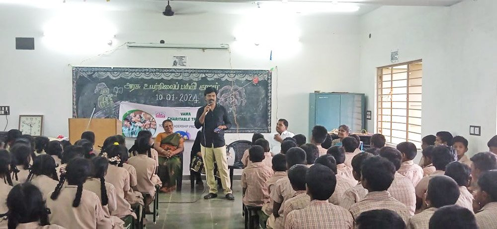 Mr. Pandian, Mr. Vignesh, Ms. Priya, Mr. Sivaraman and Ms. Lakshmi Subramanian have promptly agreed to support. We ordered and supplied 10 sets of benches and tables on 26/1/24. Headmaster and teachers were so happy to receive and expressed their appreciation to get such support to students. 26/1/24 being 75th Republic Day, students performed several dances, villu Pattu, quiz program etc. Whatever the best available with the school, teachers and students organise the stage and instruments for villu Pattu and dances.