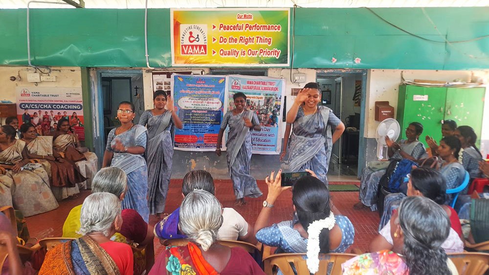 Celebrating the wisdom of our elders- Vama trust along with the first year BEd students from Merit college of Education ,Idaikal celebrated International Day for Older Persons. Around 70 elders were entertained by 34 BEd students & 5 professors and Principal madam. Students sung old songs, danced and spoke importance of caring elders.