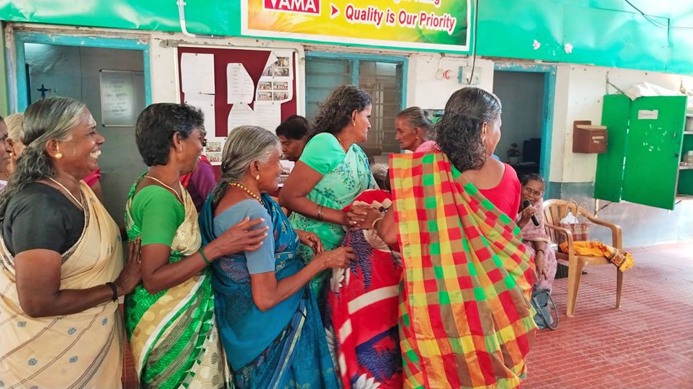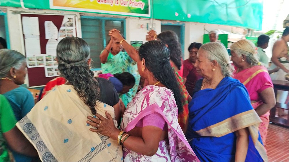 After lunch, we held an Antakshari session (Pattukku Pattu), with all the elders participating in two teams, singing joyfully. Sh Kumar who was watching the activities till lunch, got mingled with elders and amazed saying that elders present are innocent and so nice. To everyone’s delight, more than 10 elders even started dancing. Afterward, tea and biscuits were served, and all left with happy hearts, having enjoyed a wonderful and fulfilling day.