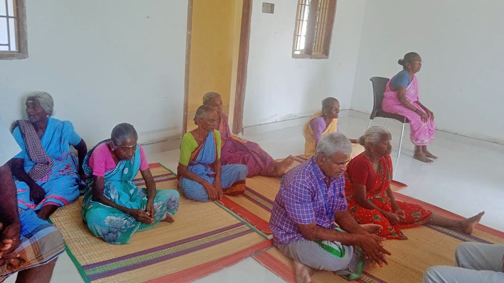 A significant portion of the session addressed common concerns such as knee pain, back pain, and joint discomfort. The Heartfulness team suggested regular yoga and meditation (“Thiyanam”) as effective methods for relieving pain and promoting peace of mind. The elders actively participated in the Thiyanam session and reported feeling relaxed and rejuvenated afterward.