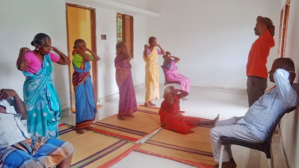 The session included individual interactions where the team understood the family situations of the elders and assessed their health care practices at home. The team emphasized the importance of self-care, stating that individuals are the primary caregivers for their own health. They encouraged the elders to dedicate time daily to physical and mental well-being through simple exercises.