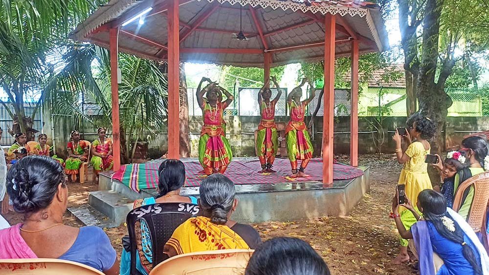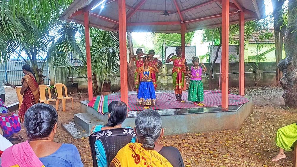 On the spot request to Ms. Rohini, she arranged  her students to perform Bharathanatyam  dance program.  17  children of age group of 10 -17 did an awesome performance to entertain the elders with their talent.  Elders  felt very happy as if their granddaughters are performing dances.  It was raining in the morning and all of sudden when the dance program was planned, rain stopped and elders enjoyed a lot.