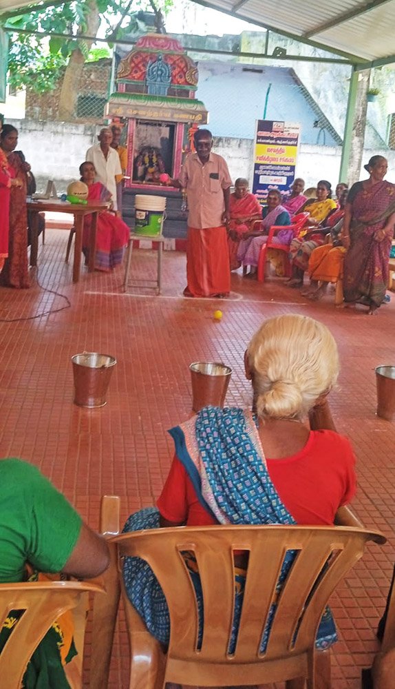Post having their exercise & yoga session at 11.15 am elders gathered for activities. Vama team conducted various games such as Passing Ball, putting balls in basket and spoon with lemon run.