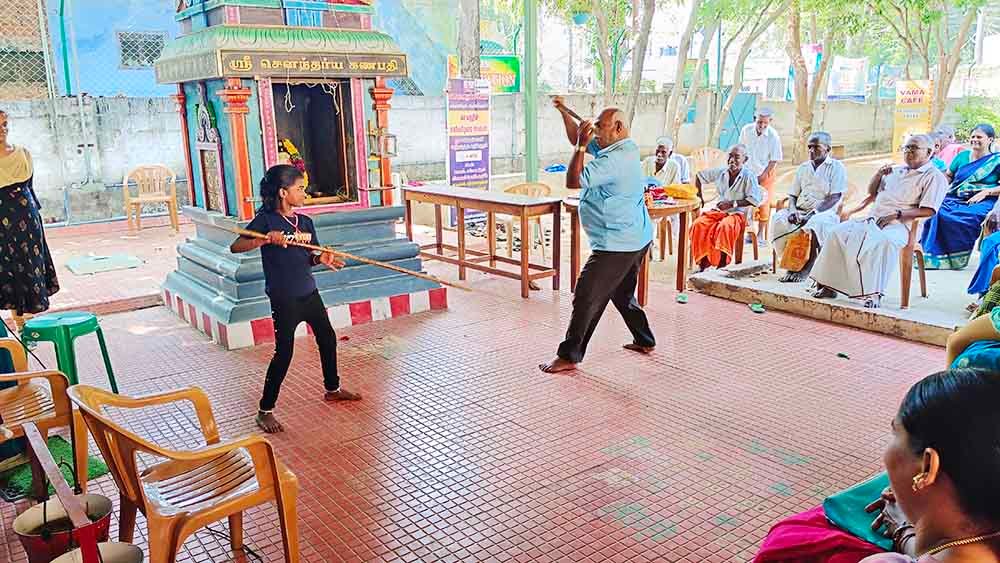 Elders celebrated 86th week of their Sangamam and participated equally with Digital Facilitation Centre (DFC) students in several games and competitions. Great lunch – Rice, Sambar, Aviyal and sarkaraopongal was served and enjoyed by all present.
