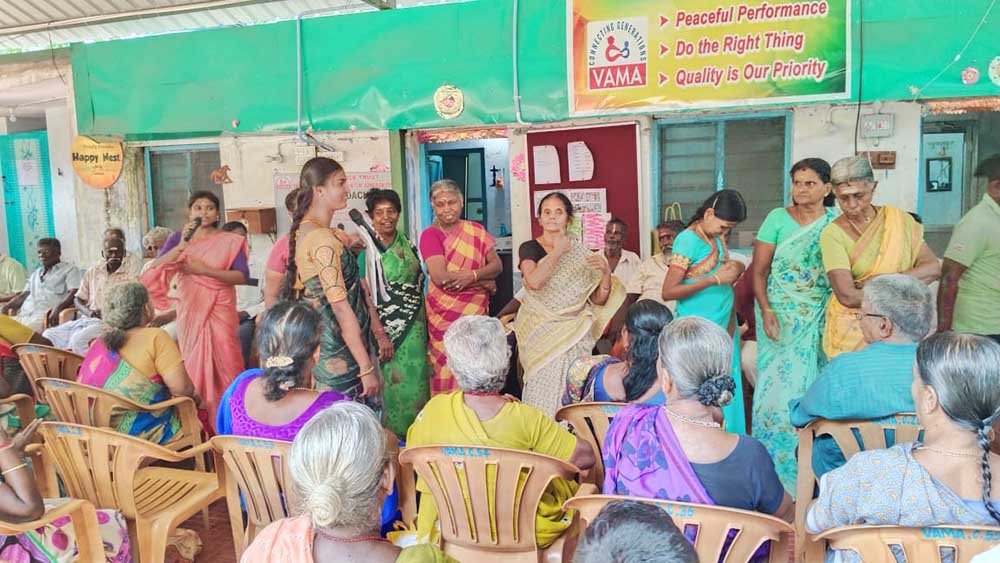 Both girls conducted many games and brought out the out of things from the elders, they shared their last 92 weeks experience with VAMA, how they introduced with Vama and how they participated in all activities and how they were got the refreshment from their loneliness, these are all interacted by them.