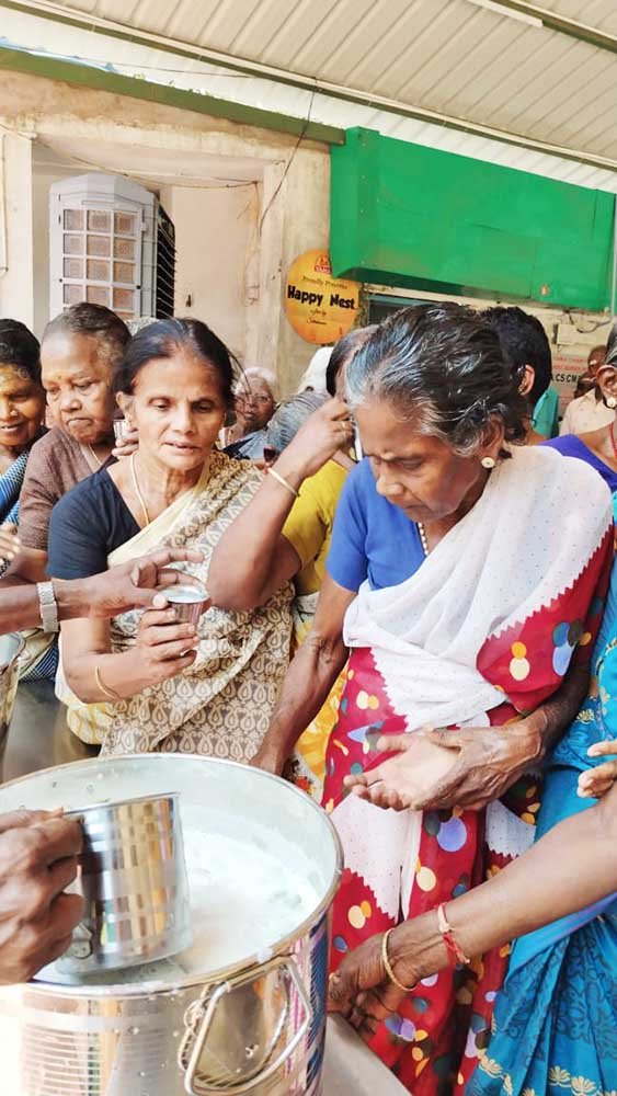 At 11.30 A.M. – White Pumkin Juice was prepared and served to elders. Ms. Vadivoo explained the values of Pumkin to preventing Cancer and the usage in villages of While Pumkin in Moore Kuzhambu and Kottu. Ms. Vadivoo shared with sarrow that during last week there were two incidences of death in Vama Family members viz.