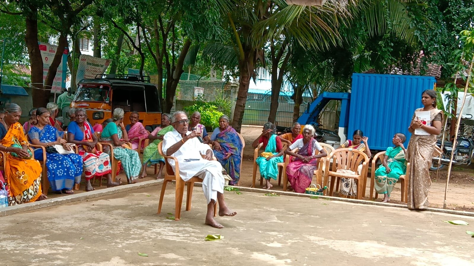In the break time elders enjoyed healthy drink (malt). All of sudden, post first break, elders were asked to participate in a Pattimandram spontaneously. Without any hesitation, Sh. I Lakshmanan, Sh. Sadasivam, Sh. Ramaya Thatha and Smt. Eassakiammal, Smt. Muthulakshmi and Smt. Amutha came front and eagerly started the program. Sh. Lakshmikanthan, consented to act as the Judge for the program. The topic the debate is இன்றைய காலத்தில் நாகரிகமும் பண்பாடும் வளர்கிறதா? தளர்கிறதா? Well debated by both the teams and VAZHARKIRATHU team was adjudged as winners.